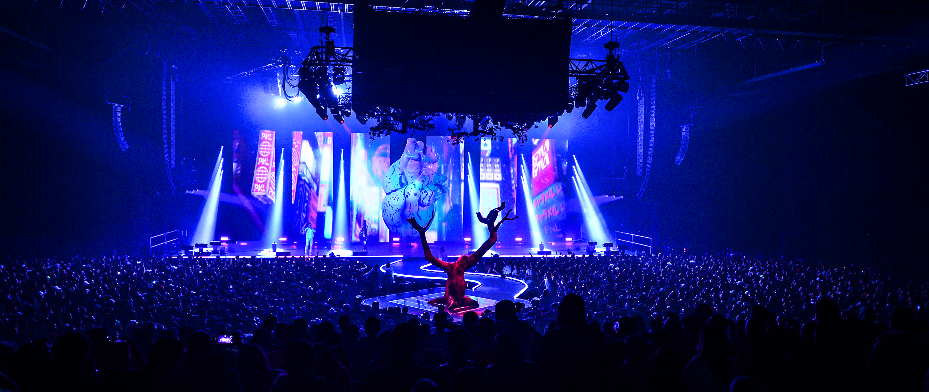 During their 2017 tour in France's biggest cinemas, the French rap group PNL set on fire with a colossal scenography